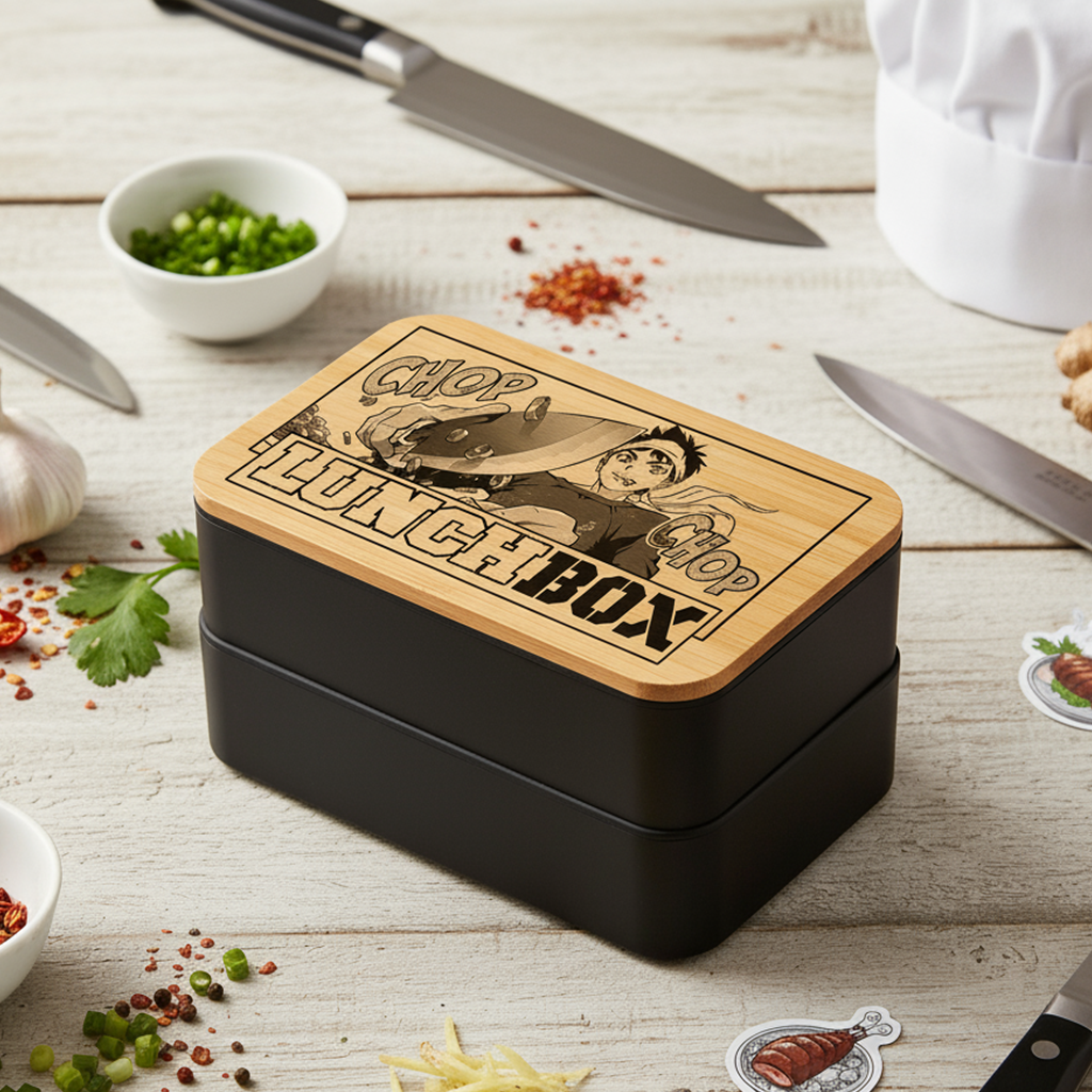 Avec ses deux compartiments en polypropylène alimentaire, elle permet de séparer facilement tes préparations : plats, garnitures, desserts… Le couvercle en bambou gravé à l’effigie de Soma Yukihira apporte une touche unique et élégante, parfaite pour les passionnés d’anime et de cuisine.
